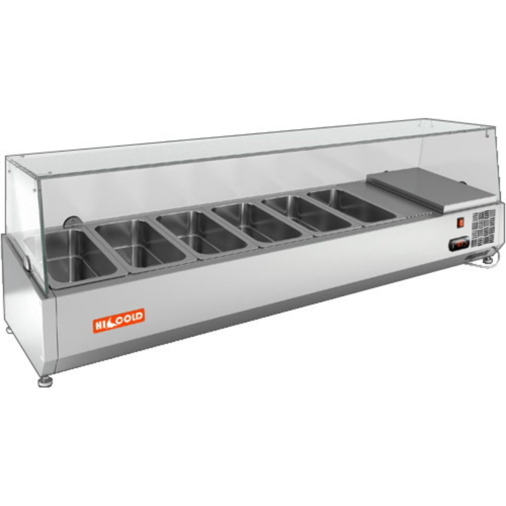 Каталог оборудования Холодильное оборудованиеВитрины для ингредиентовВитрина холодильная для ингредиентов HICOLD VRTG 1485 1/4 Витрина холодильная для ингредиентов HICOLD VRTG 1485 1/4 Код товара: 064-455 Поделиться: WhatsAppTelegram СравнитьДобавить в КПВ избранное 0 62 955 ₽ В корзину 0 шт Под заказСамовывоз сегодня бесплатно Взять в кредит Купить в лизинг Получить консультацию в WhatsApp Описание Характеристики Отзывы 0 Инструкции 2 Витрина холодильная для ингредиентов HICOLD VRTG 1485 1/4 предназначена для охлаждения, кратковременного хранения и наглядной демонстрации ингредиентов, салатов и готовых блюд на предприятиях общественного питания и в торговых точках. Гастроёмкости в комплект не входят, приобретаются отдельно. Основные особенности: Корпус выполнен из нержавеющей стали, обеспечивая долговечность и легкость в уходе; Электронная панель управления для точной настройки температуры; Модель с надстройкой из стекла (исполнение G) для удобной демонстрации продуктов; Высота витрины — 225 мм, высота стеклянной надстройки — 205 мм; Вместимость: 6 гастроёмкостей GN1/4; Опорные ножки для устойчивой установки на столешнице. HICOLD VRTG 1485 1/4 — компактная и функциональная настольная витрина, идеально подходящая для демонстрации и кратковременного хранения продуктов на профессиональной кухне или в торговой зоне.Изображение товара, представленного на фото, может отличаться от его фактического вида. Показать все Габаритные размеры1485×325×459 ммДиапазон рабочей температурыот +2 до +7 °CДлина1485 ммГлубина325 ммВысота459 ммТип крышкиСтеклянная Гастроемкостей6 штТип гастроемкостейGN1/4 Мощность150 ВтНапряжение220 ВТип охлажденияСтатическое Материал изготовленияНержавеющая сталь ХладагентR134 Мощность0,15 кВтВес нетто48 кгВес брутто91 кгТип оттайкиРучная Габариты в упаковке1670×590×550 ммБрендHicold Оставить отзыв Еще никто не оставил отзыв на этот товар Инструкция на HICOLD VRTG 1485.pdfДекларация о соответствии.pdf Похожие товары Перейти в каталог Под заказ 57 700 ₽ Витрина для ингредиентов Carboma A30 SM 1,2 (5 GN1/4) с крышкой Под заказ 89 578 ₽ Витрина холодильная для ингредиентов HICOLD VRTG 2360 к PZ3 (1/3) Под заказ 60 850 ₽ Витрина холодильная для ингредиентов HICOLD VRTO 2280 к PZ3 (1/3) Под заказ 52 500 ₽ Витрина для ингредиентов Carboma A40 SM 0,9 (3 GN1/3) Под заказ 68 463 ₽ Витрина холодильная для ингредиентов HICOLD VRX 1600 1/3 Под заказ 46 276 ₽ Витрина холодильная для ингредиентов Tatra TVR1200-5GN1/4 В наличии 64 198 ₽ Витрина холодильная для ингредиентов HICOLD VRTG 1390 к PZ3 (1/3) Под заказ 60 350 ₽ Витрина для ингредиентов Polair VT2v-G (1/3) с подсветкой и защитным колпаком С этим товаром покупают В наличии 63 864 ₽ Шкаф холодильный МХМ Капри 0,5МВ Ранее просмотрено В наличии 60 796 ₽ Витрина холодильная для ингредиентов HICOLD VRTU 1970 1/4