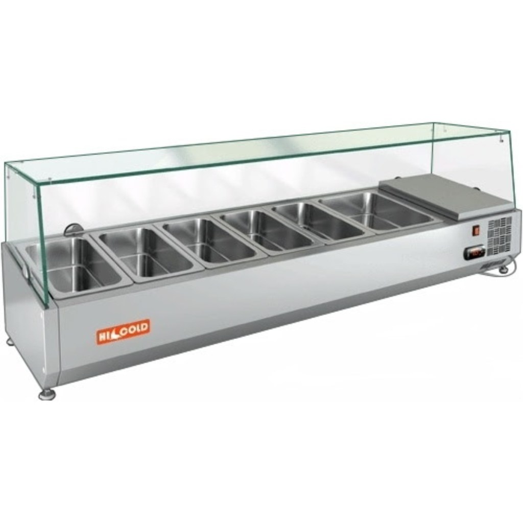 Каталог оборудования Холодильное оборудованиеВитрины для ингредиентовВитрина холодильная для ингредиентов HICOLD VRTG 1485 к PZE3 (1/3) Витрина холодильная для ингредиентов HICOLD VRTG 1485 к PZE3 (1/3) Код товара: 064-654 Поделиться: WhatsAppTelegram СравнитьДобавить в КПВ избранное 0 65 926 ₽ В корзину 0 шт Под заказСамовывоз сегодня бесплатно Взять в кредит Купить в лизинг Получить консультацию в WhatsApp Описание Характеристики Отзывы 0 Инструкции 2 Витрина холодильная для ингредиентов HICOLD VRTG 1485 к PZE3 (1/3) предназначена для охлаждения, кратковременного хранения и демонстрации ингредиентов, салатов и готовых блюд на предприятиях общественного питания и торговли. Устанавливается на холодильные столы для пиццы серии PZE3 благодаря встроенным креплениям в нижней части корпуса. На фото показана аналогичная модель с настольной установкой. Ключевые особенности: Корпус из нержавеющей стали — долговечность, простота ухода. Электронная панель управления — точная регулировка температуры. Исполнение G — стеклянная надстройка для удобного обзора продуктов. Высота витрины — 459 мм — компактное размещение на рабочей поверхности. Вместимость: 5 x GN1/3 + 1 x GN1/2 — рациональная организация хранения (гастроёмкости приобретаются отдельно). Совместимые модели столов: PZE3-111/SN, PZE3-111/GN HICOLD VRTG 1485 к PZE3 (1/3) — это профессиональная настольная витрина, которая сочетает компактные размеры, современное управление и высокое качество охлаждения. Отличный выбор для пиццерий, ресторанов и кафе, где важны удобство доступа, скорость работы и эффектная подача продуктов.Изображение товара, представленного на фото, может отличаться от его фактического вида. Показать все Габаритные размеры1485×385×459 ммДиапазон рабочей температурыот +2 до +7 °CДлина1485 ммГлубина385 ммВысота459 ммТип крышкиСтеклянная Гастроемкостей6 штТип гастроемкостейGN1/3, GN1/2 Мощность150 ВтНапряжение220 ВТип охлажденияСтатическое Материал изготовленияНержавеющая сталь ХладагентR134 Мощность0,15 кВтВес нетто48 кгВес брутто91 кгТип оттайкиРучная Габариты в упаковке1670×590×550 ммБрендHicold Оставить отзыв Еще никто не оставил отзыв на этот товар Инструкция на HICOLD VRTG 1485 к PZЕ3.pdfДекларация о соответствии.pdf Похожие товары Перейти в каталог Под заказ 66 520 ₽ Витрина холодильная для ингредиентов HICOLD VRX 1400 1/3 В наличии 45 680 ₽ Витрина холодильная для ингредиентов Tatra TVR1200-5GN1/4 Под заказ 68 680 ₽ Витрина холодильная для ингредиентов HICOLD VRTU 2360 1/3 Под заказ 46 580 ₽ Витрина для ингредиентов Polair VT1EN (1/3) открытого типа В наличии 37 831 ₽ Витрина холодильная для ингредиентов Cooleq VRX 1500/330 Под заказ 55 557 ₽ Витрина холодильная для ингредиентов HICOLD VRTO 1915 к PZ4 (1/3) Под заказ 42 651 ₽ Витрина холодильная для ингредиентов HICOLD VRTO 1000 1/4 В наличии 72 104 ₽ Витрина холодильная для ингредиентов TEFCOLD VK33-120 S/S LID С этим товаром покупают В наличии 17 786 ₽ Льдогенератор Cooleq ICD-12 (пальчики) В наличии 63 865 ₽ Шкаф холодильный МХМ Капри 0,5МВ