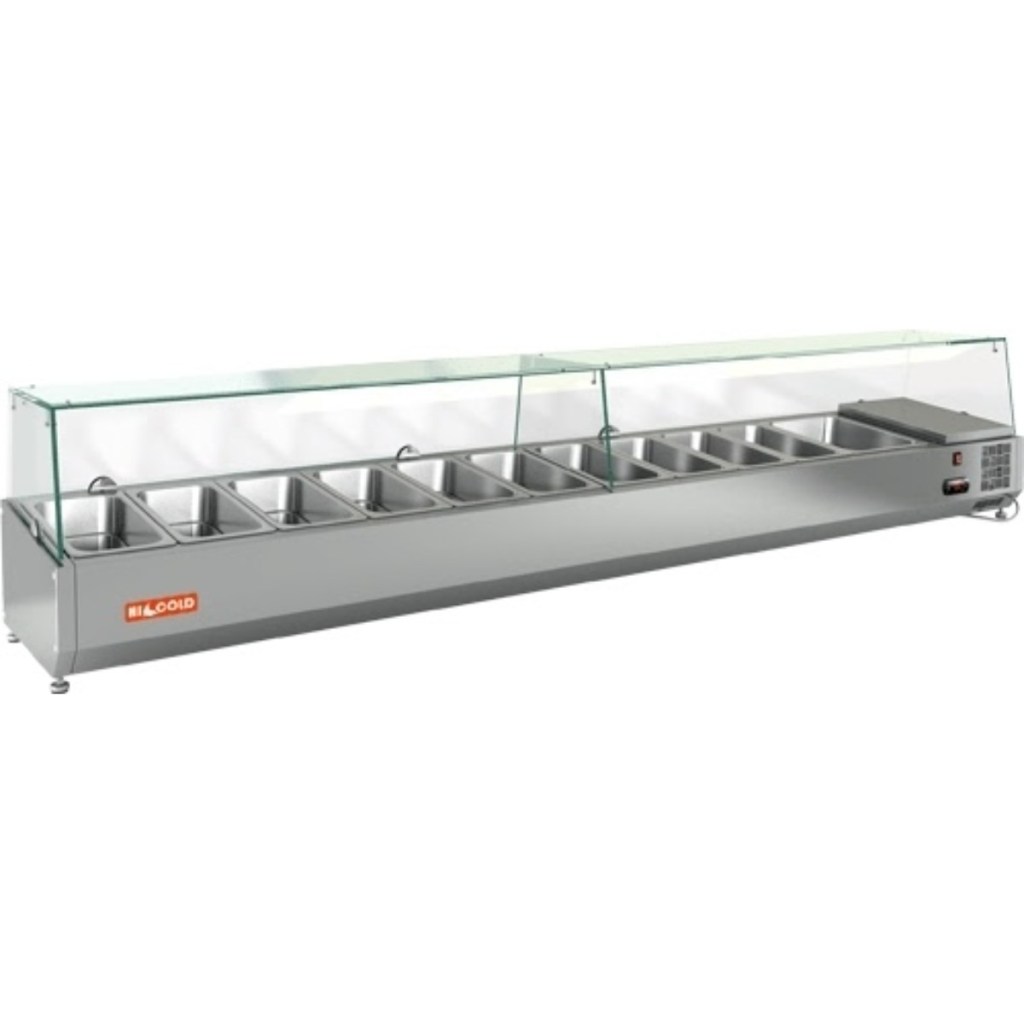 Каталог оборудования Холодильное оборудованиеВитрины для ингредиентовВитрина холодильная для ингредиентов HICOLD VRTG 2360 1/3 Витрина холодильная для ингредиентов HICOLD VRTG 2360 1/3 Код товара: 064-449 Поделиться: WhatsAppTelegram СравнитьДобавить в КПВ избранное 0 89 847 ₽ В корзину 0 шт Под заказСамовывоз сегодня бесплатно Взять в кредит Купить в лизинг Получить консультацию в WhatsApp Описание Характеристики Отзывы 0 Инструкции 2 Витрина холодильная для ингредиентов HICOLD VRTG 2360 1/3 предназначена для охлаждения, кратковременного хранения и наглядной демонстрации ингредиентов, салатов и готовых блюд на предприятиях общественного питания и в торговых точках. Гастроёмкости в комплект не входят, приобретаются отдельно. Основные особенности: Корпус выполнен из нержавеющей стали, обеспечивая долговечность и легкость в уходе; Электронная панель управления для точной настройки температуры; Модель с надстройкой из стекла (исполнение G) для удобной демонстрации продуктов; Высота витрины — 225 мм, высота стеклянной надстройки — 205 мм; Вместимость: 10 гастроёмкостей GN1/3 + 1 гастроёмкость GN1/2; Опорные ножки для устойчивой установки на столешнице. HICOLD VRTG 2360 1/3 — компактная и функциональная настольная витрина, идеально подходящая для демонстрации и кратковременного хранения продуктов на профессиональной кухне или в торговой зоне.Изображение товара, представленного на фото, может отличаться от его фактического вида. Показать все Габаритные размеры2360×385×459 ммДиапазон рабочей температурыот +2 до +7 °CДлина2360 ммГлубина385 ммВысота459 ммТип крышкиСтеклянная Гастроемкостей11 штТип гастроемкостейGN1/3, GN1/2 Мощность0,15 ВтНапряжение220 ВТип охлажденияСтатическое Материал изготовленияНержавеющая сталь ХладагентR134 Вес нетто67 кгВес брутто107 кгТип оттайкиРучная Габариты в упаковке2460×485×559 ммБрендHicold Оставить отзыв Еще никто не оставил отзыв на этот товар Инструкция на HICOLD VRTG 2360.pdfДекларация о соответствии.pdf Похожие товары Перейти в каталог В наличии 36 211 ₽ Витрина холодильная для ингредиентов HURAKAN HKN-VRX1200/330 Под заказ 50 860 ₽ Витрина холодильная для ингредиентов HICOLD VRTU 1390 1/4 Под заказ 50 000 ₽ Витрина для ингредиентов Carboma A40 SM 1,2 VT2-G В наличии 39 646 ₽ Витрина холодильная для ингредиентов Cooleq VRX 1500/380 В наличии 65 926 ₽ Витрина холодильная для ингредиентов HICOLD VRTG 1485 к PZE3 (1/3) Под заказ 60 850 ₽ Витрина холодильная для ингредиентов HICOLD VRTO 2280 к PZ3 (1/3) Под заказ 61 551 ₽ Витрина холодильная для ингредиентов HICOLD VRTG 1425 1/4 Под заказ 64 899 ₽ Витрина холодильная для ингредиентов HICOLD VRX 1600 1/4 С этим товаром покупают Под заказ 115 876 ₽ Шкаф холодильный Ангара 1500 РБК Под заказ 90 421 ₽ Шкаф холодильный универсальный Arkto V0.7-SLD В наличии 183 209 ₽ Шкаф морозильный МХМ Капри 1,5Н нержавейка Под заказ 66 471 ₽ Шкаф холодильный Polair TM101-Grande с глухой дверью без борта Под заказ 161 340 ₽ Шкаф холодильный Abat ШХ-1,0 В наличии 16 149 ₽ Шкаф холодильный COOLEQ TBC-46 Под заказ 116 348 ₽ Шкаф холодильный универсальный Ангара 1000 М В наличии 163 326 ₽ Шкаф холодильный низкотемпературный Arkto F1.4-S Ранее просмотрено Под заказ 55 287 ₽ Витрина холодильная для ингредиентов HICOLD VRTU 1835 1/4 В наличии 60 796 ₽ Витрина холодильная для ингредиентов HICOLD VRTU 1970 1/4