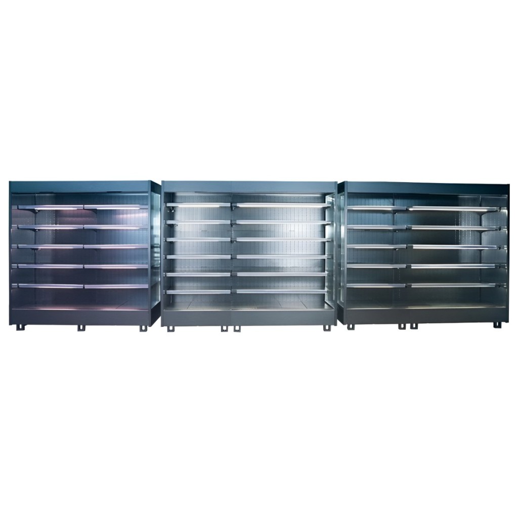 Система воздушной завесы предотвращает попадание тёплого воздуха внутрь витрины, обеспечивая стабильный температурный режим даже при интенсивной эксплуатации. Встроенное LED-освещение делает выкладку яркой и привлекательной, при этом потребляет минимум электроэнергии.