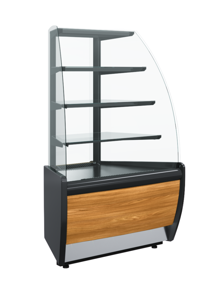 Витрина выполнена в угловом исполнении, что позволяет органично встроить её в торговую линию и эффективно использовать пространство. Оборудована гнутым фронтальным стеклом и боковым остеклением для максимальной видимости содержимого. Раздвижные створки из оргстекла обеспечивают удобный доступ к продукции со стороны персонала. Корпус изготовлен из прочной стали, боковины — из износостойкого пластика. Пенополиуретановая теплоизоляция надёжно удерживает температурный режим.