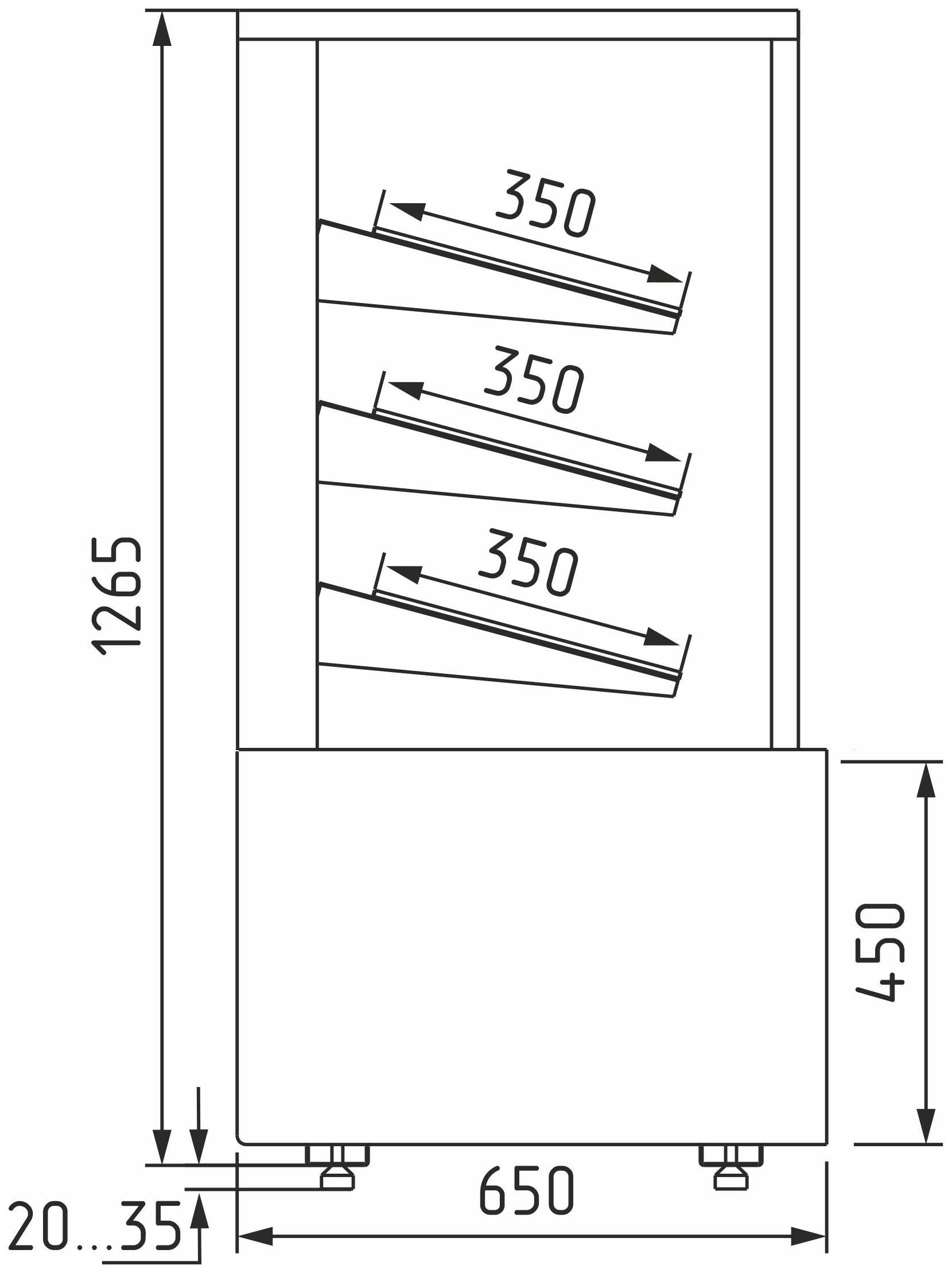 Корпус витрины изготовлен из окрашенной стали, с термоизоляцией из пенополиуретана. Конструкция дополнена боковым остеклением и раздвижными задними створками из оргстекла.
