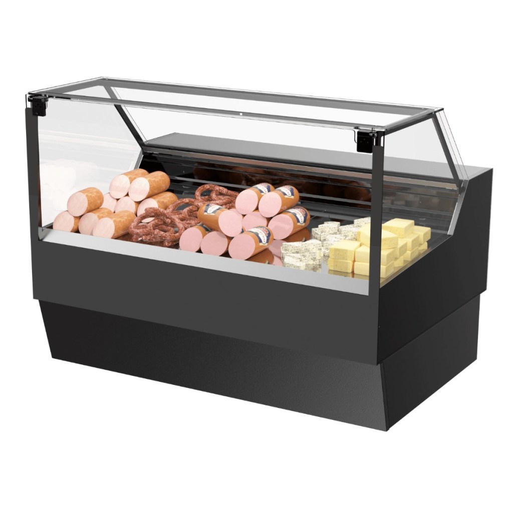 Модель оснащена прочным корпусом с ударопрочным бампером из ABS-пластика, фронтальными и боковыми стеклами, задними шторками из оргстекла, регулируемыми ножками и светодиодной подсветкой для удобной выкладки продукции.