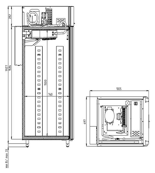 Каталог оборудования Холодильное оборудованиеШкафы холодильныеСпециализированные холодильные шкафыШкаф холодильный для хлебопекарных производств Polair CS107 Bakery Br черный, со стеклом (Тип 2) Шкаф холодильный для хлебопекарных производств Polair CS107 Bakery Br черный, со стеклом (Тип 2) Код товара: 062-625 Поделиться: WhatsAppTelegram СравнитьДобавить в КПВ избранное 0 405 365 ₽ В корзину 0 шт В наличии на 2 складахДоступно для заказа 2 шт.Наличие на складахМоскваМО, Бритово, Раменский гор. округ, Складской комплекс ССТ, корп. 2, секция 2В наличии 1 шт.Санкт-ПетербургЛО, Центральное отделение (Промышленный район), д.29 к3В наличии 1 шт.Самовывоз сегодня бесплатно Расчет стоимости доставкиОткудаМоскваСанкт-ПетербургКудаМоскваСанкт-ПетербургАстраханьБарнаулБелгородБрянскВладивостокВолгоградВоронежЕкатеринбургИвановоИжевскИркутскКазаньКалининградКемеровоКировКраснодарКрасноярскКурскЛипецкМагнитогорскМахачкалаНабережные ЧелныНижний НовгородНижний ТагилНовокузнецкНовосибирскОмскОренбургПензаПермьПятигорскРостов-на-ДонуРязаньСамараСаратовСимферопольСтавропольТверьТольяттиТомскТулаТюменьУлан-УдэУльяновскУфаХабаровскЧебоксарыЧелябинскЯрославльРассчитатьРасчет стоимости доставки указан приблизительный, более точный расчет Вам может осуществить сотрудник транспортной компании. Взять в кредит Купить в лизинг Получить консультацию в WhatsApp Описание Характеристики Отзывы 0 Инструкции 5 Шкаф холодильный для хлебопекарных производств Polair CS107 Bakery Br черный, со стеклом (Тип 2) предназначен для создания оптимальных условий хранения и расстойки тестовых заготовок на предприятиях общественного питания и торговли. Внешняя обшивка цельнозаливного корпуса выполнена из стали с полимерным покрытием чёрного цвета, внутренняя — из нержавеющей стали. Дверь изготовлена из стеклопакета. Оборудование рассчитано на работу при температуре окружающей среды до +40 °C. В комплект входит 20 пар направляющих размером 400×600 мм. Особенности: Универсальные режимы: охлаждение заготовок и замедление ферментации, хранение, регенерация, брожение и расстойка Динамическое охлаждение с мягким обдувом без заветривания и автоматическая оттайка с системой испарения конденсата Панель управления с 7-дюймовым дисплеем: контроль температуры, влажности (регулируется от 60 до 95 %), скорости вентилятора и времени; возможность создания и сохранения собственных программ Встроенный ультразвуковой увлажнитель (требуется подключение к системе водоочистки и канализации) Эргономичная конструкция: верхнее расположение агрегата, распашная дверь со стеклопакетом и механизмом самозакрывания, педаль для открытия, съёмные направляющие и легко заменяемый уплотнитель с магнитной вставкой Простота ухода: штампованное углубление в дне корпуса для сбора загрязнений Экологичный хладагент R290 Энергоэффективность: потребляемая мощность — 0,55 кВт (охлаждение), 0,9 кВт (нагрев) Толщина стенки корпуса — 43 мм Polair CS107 Bakery Br черный, со стеклом (Тип 2) — современный и многофункциональный шкаф отложенной расстойки, позволяющий точно контролировать процессы подготовки теста и хранения заготовок. Благодаря продуманной конструкции, расширенным режимам и удобному управлению, он идеально подходит для пекарен и кондитерских, стремящихся к высокому качеству продукции и эффективной работе.Изображе