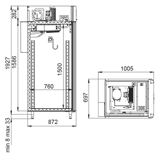 Каталог оборудования Холодильное оборудованиеШкафы холодильныеСпециализированные холодильные шкафыШкаф холодильный для вызревания мяса Polair CS107 Meat черный, со стеклом (Тип 2) Шкаф холодильный для вызревания мяса Polair CS107 Meat черный, со стеклом (Тип 2) Код товара: 062-633 Поделиться: WhatsAppTelegram СравнитьДобавить в КПВ избранное 0 392 700 ₽ В корзину 0 шт Под заказСамовывоз сегодня бесплатно Взять в кредит Купить в лизинг Получить консультацию в WhatsApp Описание Характеристики Отзывы 0 Инструкции 5 Шкаф холодильный для вызревания мяса Polair CS107 Meat черный, со стеклом (Тип 2) предназначен для создания оптимальных условий хранения и дозревания мяса на предприятиях общественного питания и торговли. Монолитный цельнозаливной корпус выполнен снаружи и на двери из окрашенной стали, внутри — из нержавеющей стали, дверь оснащена стеклопакетом. Оборудование рассчитано на работу при температуре окружающей среды до 40 °С. Особенности: Верхнее расположение агрегата для эффективного распределения холода Многофункциональная русифицированная панель управления с дисплеем диагональю 5" Возможность создания и сохранения собственных программ в памяти электронного блока Четыре перфорированные полки для удобного размещения продукции Встроенный ультразвуковой увлажнитель (требуется подключение к системе очищенной воды и централизованной канализации) UV-лампа для обеззараживания воздуха, обеспечивающая санитарную безопасность Распашная дверь с заливной теплоизоляцией и сменным уплотнителем с магнитной вставкой Встроенная удобная ручка Отключаемая внутренняя LED-подсветка Штампованное углубление в дне корпуса для удобства уборки Педаль для бесконтактного открывания двери Максимальная нагрузка на полку — 40 кг Толщина стенок корпуса — 43 мм Polair CS107 Meat черный, со стеклом (Тип 2) — это надежный и функциональный холодильный шкаф, который обеспечивает стабильные и комфортные условия для хранения и дозревания мяса. Высококачественные материалы корпуса и дверей, продвинутые системы увлажнения и обеззараживания воздуха, а также удобное управление позволяют значительно повысить качество продукции и эффективность работы предприятий пищевой отрасли.Изображение товара, представленного на фото, может отличаться от его фактического вида. Показать все Габаритные размеры697×1005×1960 ммДиапазон рабочей температурыот -2 до +30 °CДлина697 ммШирина1005 ммВысота1960 ммОбъём700 лКол-во дверей1 Тип двериСтеклянная Количество полок4 штДопустимая нагрузка на полку40 кгУровень влажностиот 60 до 95 %Холодильный агрегатВстроенный Тип оттайкиАвтоматическая Тип охлажденияДинамическое ПодсветкаЕсть UV-лампаЕсть ХладагентR290 Вес нетто160 кгВес брутто190 кгБрендPolairВсе специализированные холодильные шкафы Из нержавейкиВсе специализированные холодильные шкафы Стеклянная дверь Оставить отзыв Еще никто не оставил отзыв на этот товар Схема POLAIR CS107-Meat.jpgИнструкция на POLAIR CS107-Meat.pdfБрошюра на POLAIR CS107-Meat.pdfДекларация о соответствии.pdfСертификат соответствия.pdf Похожие товары Перейти в каталог Под заказ 252 314 ₽ Шкаф холодильный для вызревания мяса и сыра Carboma M700GN-1-G-MHC 9005 В наличии 186 231 ₽ Шкаф холодильный HURAKAN HKN-MA230 для созревания мяса Под заказ 385 475 ₽ Шкаф холодильный для вызревания сыра Polair CS107 Cheese полки окраш. В наличии 397 290 ₽ Шкаф холодильный для хлебопекарных производств Polair CS107 Bakery Br (Тип 1) Под за