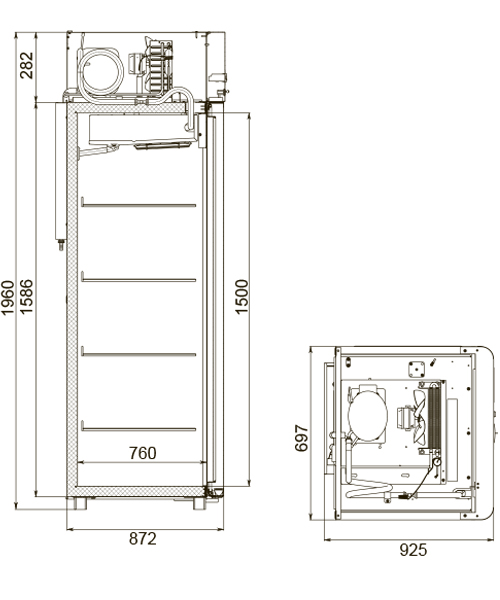 Каталог оборудования Холодильное оборудованиеШкафы холодильныеШкафы холодильные универсальные от -5 до +5 °СШкаф холодильный универсальный Polair CV107-Sm Alu Шкаф холодильный универсальный Polair CV107-Sm Alu Код товара: 062-611 Поделиться: WhatsAppTelegram СравнитьДобавить в КПВ избранное 0 129 370 ₽ В корзину 0 шт Под заказСамовывоз сегодня бесплатно Взять в кредит Купить в лизинг Получить консультацию в WhatsApp Описание Характеристики Отзывы 0 Инструкции 4 Шкаф холодильный универсальный Polair CV107-Sm Alu предназначен для демонстрации и надежного хранения продуктов на предприятиях общественного питания и торговли. Цельнозаливной корпус выполнен из стали с полимерным покрытием и оснащен алюминиевыми профилями, что обеспечивает высокую прочность конструкции и долговечность, а также подчеркивает современный премиальный дизайн. Шкаф работает при температуре окружающей среды до 40 °С и влажности воздуха до 80%. Особенности модели: Контрольная панель с быстрым доступом к настройкам, удобным возвратом в предыдущее меню и возможностью полного отключения без отдельной кнопки. Жидкокристаллический дисплей для наглядного отображения параметров. Клапан Шредера для обслуживания холодильной системы. Компенсационный клапан с ПЭНом обогрева, ПЭНы обогрева трубки слива конденсата и дверного проема — предотвращают образование льда и обеспечивают надежную работу. Распашной тип двери с возможностью изменения стороны открывания, что делает установку более гибкой. Полностью интегрированные ручки, удобные и стильные. Эластичные уплотнители с магнитными вставками для максимальной герметизации. Внутренняя подсветка вынесена на нижнюю часть фронтальной панели. Микропереключатель для автоматического отключения вентилятора и включения подсветки при открытии дверей. Регулируемые по высоте ножки для устойчивости на любом полу. Педаль для удобного открывания без рук. Замок для защиты содержимого. Высокая допустимая нагрузка на полку — до 40 кг. Размер полки: GN 2/1 (530×650 мм). Толщина стенки корпуса — 43 мм, что обеспечивает отличную теплоизоляцию. Polair CV107-Sm Alu — это функциональный и надежный холодильный шкаф с современным дизайном, который обеспечивает максимальную сохранность и удобный доступ к продуктам. Отлично подходит для ресторанов, кафе и магазинов, где важны надежность, стиль и энергоэффективность.Изображение товара, представленного на фото, может отличаться от его фактического вида. Показать все Габаритные размеры697×925×1960 ммДиапазон рабочей температурыот -5 до +5 °CДлина697 ммГлубина925 ммВысота1960 ммОбъём700 лРазмер полки530×650 ммКоличество полок4 штКоличество дверей1 штТип оттайкиАвтоматическая Тип охлажденияДинамическое Тип управленияЭлектронное Материал корпусаНержавеющая сталь Тип двериМеталлическая ЗамокЕсть Способ открыванияРаспашные ХладагентR290 Холодильный агрегатВстроенный Расположение агрегатаВерхнее Потребление электроэнергии в сутки4,5 кВтПотребляемая мощность0,4 кВтНапряжение220 ВГабариты в упаковке800×1000×2150 ммВес нетто113 кгВес брутто138 кгБрендPolairВсе шкафы холодильные универсальные от -5 до +5 °С Из нержавейки Оставить отзыв Еще никто не оставил отзыв на этот товар Схема POLAIR CV107-Sm.jpgИнструкция на POLAIR CV107-Sm.pdfДекларация о соответствии.pdfСертификат соответствия.pdf Похожие товары Перейти в каталог Под заказ 196 123 ₽ Шкаф холодильный Abat ШХ-1,4-01 нерж. Под