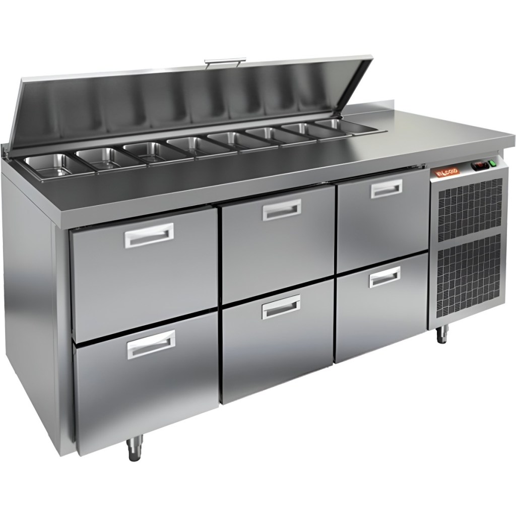 Каталог оборудования Холодильное оборудованиеСтолы охлаждаемыеСтолы холодильные для салатовСтол холодильный для салатов HiCold SL1-222GN (1/3) с крышкой Стол холодильный для салатов HiCold SL1-222GN (1/3) с крышкой Код товара: 064-844 Поделиться: WhatsAppTelegram СравнитьДобавить в КПВ избранное 0 260 092 ₽ В корзину 0 шт Под заказСамовывоз сегодня бесплатно Взять в кредит Купить в лизинг Получить консультацию в WhatsApp Описание Характеристики Отзывы 0 Инструкции 1 Стол холодильный для салатов HiCold SL1-222GN (1/3) предназначен для использования на предприятиях общественного питания и торговли. Он объединяет рабочую поверхность и охлаждаемый отсек, что делает его удобным решением для хранения, охлаждения и подготовки ингредиентов при приготовлении салатов, пиццы и других блюд. Такая конструкция позволяет повару работать быстрее и эффективнее, так как все необходимые продукты находятся под рукой. Корпус и столешница выполнены из прочной нержавеющей стали, устойчивой к коррозии и легко поддающейся санитарной обработке.Металлическая крышка защищает продукты от загрязнений и сохраняет их свежесть. Особенности модели: Электронная панель управления — точная настройка температурного режима. 6 выдвижных ящика — быстрое размещение и замена продуктов. Вместимость салат-бара — до 8 гастроемкостей глубиной до 100 мм. Автоматические доводчики — комфорт при загрузке/выгрузке. Легкозаменяемые магнитные уплотнители — надежная герметичность. Открытая агрегатная часть — быстрый доступ для обслуживания. Регулируемые по высоте ножки — устойчивость даже на неровном полу. Толщина столешницы, борта и теплоизоляции — 50 мм, что обеспечивает прочность и энергоэффективность конструкции. HiCold SL1-222GN (1/3) — практичное и удобное решение для профессиональной кухни, обеспечивающее удобную подготовку и хранение ингредиентов.Изображение товара, представленного на фото, может отличаться от его фактического вида. Показать все Габаритные размеры1835×700×850 ммДиапазон рабочей температурыот +2 до +10 °CРасположение агрегатаБоковое Материал столешницыНержавеющая Тип столаС ящиками Объём505 лТип гастроемкостейGN 1/3 Количество ящиков6 штРазмер полки530×325 ммНапряжение220 ВМощность0,46 кВтТип охлажденияДинамическое Тип оттайкиАвтоматическая СтолешницаС бортом Габариты в упаковке2000×850×1000 ммВес нетто120 кгВес брутто140 кгБрендHicold Оставить отзыв Еще никто не оставил отзыв на этот товар Декларация о соответствии.pdf Ранее просмотрено Под заказ 197 722 ₽ Стол холодильный для салатов HiCold SL2-1111GN (1/6) О с крышкой