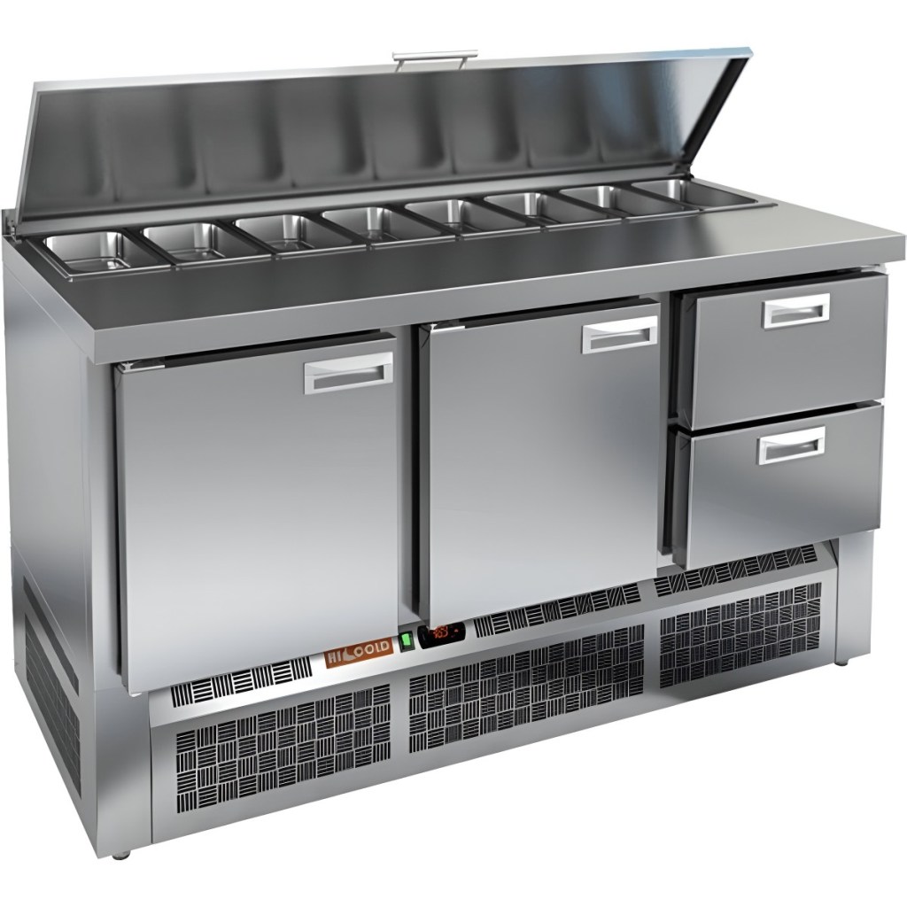 Стол холодильный для салатов HiCold SLE1-112GN (1/3) с крышкой предназначен для профессионального использования в заведениях общественного питания и торговли. Он обеспечивает не только охлаждение и кратковременное хранение продуктов, но и удобную рабочую поверхность для подготовки ингредиентов, что особенно актуально при приготовлении салатов, пиццы и холодных блюд.