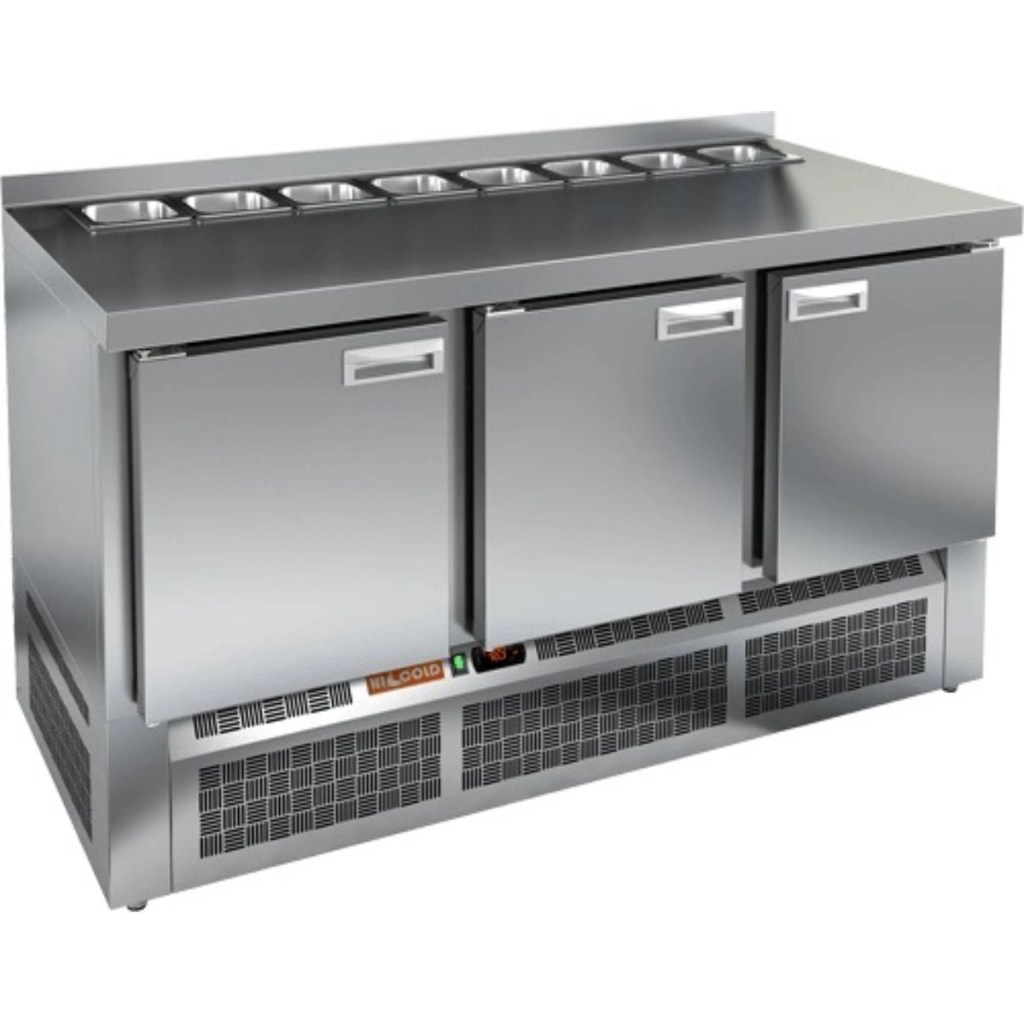 Каталог оборудования Холодильное оборудованиеСтолы охлаждаемыеСтолы холодильные для салатовСтол холодильный для салатов HiCold SLE2-111SN (1/6) без крышки Стол холодильный для салатов HiCold SLE2-111SN (1/6) без крышки Код товара: 064-871 Поделиться: WhatsAppTelegram СравнитьДобавить в КПВ избранное 0 143 632 ₽ В корзину 0 шт Под заказСамовывоз сегодня бесплатно Взять в кредит Купить в лизинг Получить консультацию в WhatsApp Описание Характеристики Отзывы 0 Инструкции 2 Стол холодильный для салатов HiCold SLE2-111SN (1/6) без крышки предназначен для предприятий общественного питания и торговли. Он используется для хранения, охлаждения и обработки ингредиентов, применяемых при приготовлении салатов, пиццы, закусок и других блюд. Модель объединяет удобную рабочую поверхность и охлаждаемый отсек, позволяя повару иметь все необходимое под рукой. Конструкция выполнена из прочной нержавеющей стали, устойчивой к коррозии и легкой в уходе. Особенности модели: Электронная панель управления — точная настройка температуры и контроль за режимами работы. 3 вместительные внутренние полки — рациональное распределение хранения. Салат-бар вмещает 8 гастроемкостей — оптимальная организация ингредиентов. Автоматические доводчики дверей с фиксацией в открытом положении — удобно при загрузке и выгрузке продуктов. Магнитные уплотнители — легко заменяются, обеспечивая герметичность. Открытая агрегатная часть — упрощает техническое обслуживание. Регулируемые по высоте ножки — позволяют установить оборудование на любой поверхности. Глубина гастроемкостей — до 100 мм. Толщина столешницы, борта и теплоизоляции — по 50 мм, что способствует сохранению холода и прочности конструкции. HiCold SLE2-111SN (1/6) без крышки — это функциональный и надёжный салатный стол, сочетающий в себе удобство работы и эффективное охлаждение. Отличное решение для кухни с интенсивной нагрузкой. Изображение товара, представленного на фото, может отличаться от его фактического вида. Показать все Габаритные размеры1485×600×850 ммДиапазон рабочей температурыот +2 до +10 °CРасположение агрегатаНижнее Материал столешницыНержавеющая Тип столаС дверьми Тип двериГлухая Объём320 лКоличество дверей3 штТип гастроемкостейGN 1/6 Размер полки430×325 ммНапряжение220 ВМощность0,22 кВтТип охлажденияДинамическое Тип оттайкиАвтоматическая СтолешницаС бортом Габариты в упаковке1700×750×1080 ммВес нетто88 кгВес брутто148 кгБрендHicold Оставить отзыв Еще никто не оставил отзыв на этот товар Паспорт на HICOLD SLE2-111SN.pdfДекларация о соответствии.pdf Ранее просмотрено Под заказ 174 501 ₽ Стол холодильный для салатов HiCold SLE3-1111GN без крышки Под заказ 154 431 ₽ Стол холодильный для салатов HiCold SLE2-12GN (1/6) с крышкой