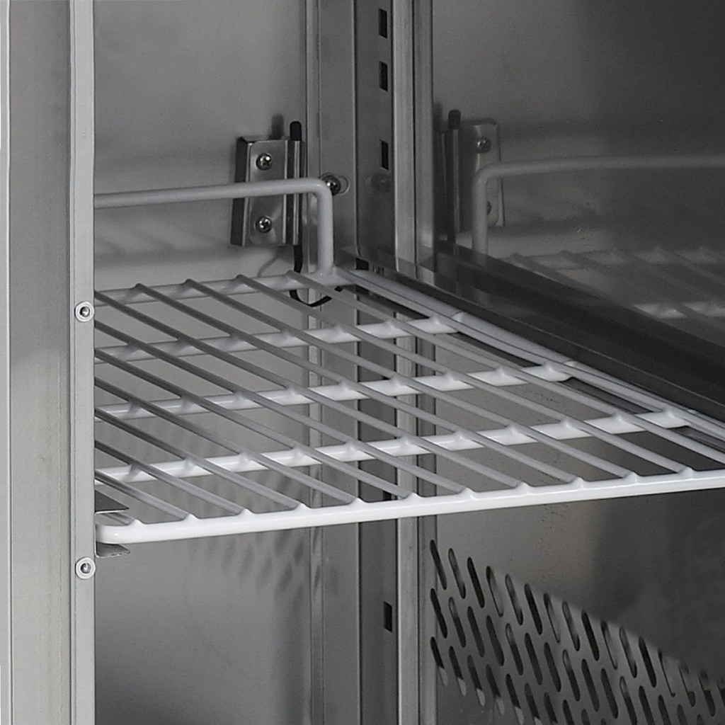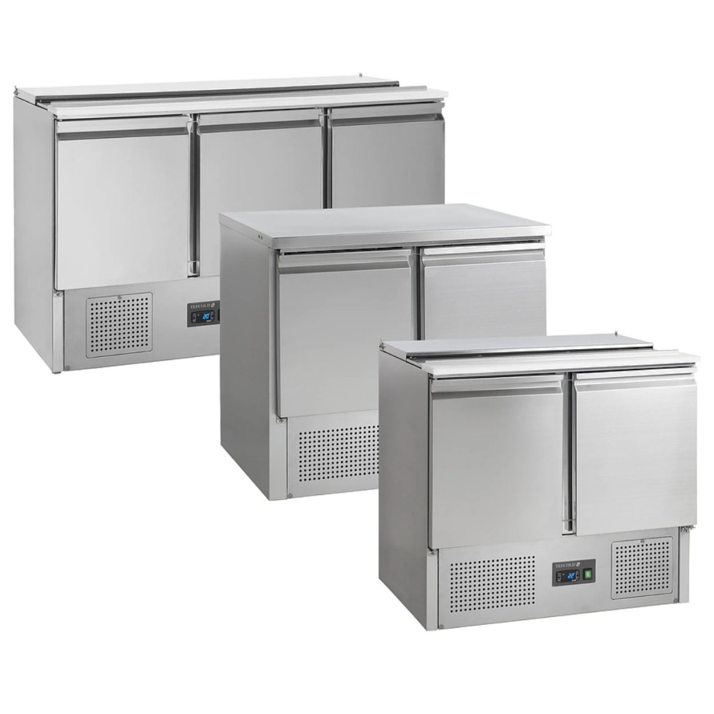 Каталог оборудования Холодильное оборудованиеСтолы охлаждаемыеСтолы холодильные для салатовСтол холодильный для салатов TEFCOLD SA910 Стол холодильный для салатов TEFCOLD SA910 Код товара: 010-357 Поделиться: WhatsAppTelegram СравнитьДобавить в КПВ избранное 0 94 892 ₽ В корзину 0 шт В наличииСамовывоз сегодня бесплатно Взять в кредит Купить в лизинг Получить консультацию в WhatsApp Описание Характеристики Отзывы 0 Стол холодильный для салатов TEFCOLD SA910 — профессиональное оборудование для обработки ингредиентов, приготовления салатов, охлаждения и кратковременного хранения продуктов на предприятиях общественного питания и торговли. Корпус и внутренняя отделка выполнены из нержавеющей стали AISI 304, что обеспечивает долговечность и простоту ухода. Особенности модели: Статическое охлаждение с вентилятором — равномерное поддержание температуры Автоматическое размораживание — поддержка стабильного режима без образования наледи Электронный термостат и градусник — точный контроль температуры Хладагент R600a, подзарядка — 0,068 кг Рабочая поверхность для нарезки и открытый верх под гастроёмкости 2 полки для удобной организации внутреннего пространства Регулируемые по высоте ножки — устойчивость на неровных поверхностях Климатический класс 4 — стабильная работа при температуре до +30 °C Полезный объём: 230 л Размеры полки: 530×325 мм Внутренние размеры камеры: 830×515×500 мм Энергопотребление: 3,12 кВт/сутки Уровень шума: 42 дБ TEFCOLD SA910 — компактный и надёжный холодильный стол для профессиональных кухонь и предприятий общественного питания. Он сочетает рабочую поверхность для нарезки, вместительное охлаждаемое пространство и эффективное управление температурой, обеспечивая удобство работы и сохранность продуктов.Изображение товара, представленного на фото, может отличаться от его фактического вида. Показать все Габаритные размеры900×700×890 ммДиапазон рабочей температурыот +2 до +10 °CРасположение агрегатаНижнее Материал столешницыНержавеющая Тип столаС дверьми Тип двериГлухая Общий объем260 лПолезный объем230 лКоличество дверей2 штРазмер полки530×325 ммНапряжение230 ВМощность0,15 кВтТип охлажденияСтатический Тип оттайкиАвтоматическая ХладагентR600a Габариты в упаковке980×770×1040 ммВес нетто72 кгВес брутто82 кгБрендTefcold Оставить отзыв Еще никто не оставил отзыв на этот товар Похожие товары Перейти в каталог Под заказ 110 947 ₽ Стол холодильный среднетемпературный Polair TD2-G Под заказ 64 485 ₽ Стол холодильный среднетемпературный Cooleq S901 Под заказ 85 405 ₽ Стол холодильный среднетемпературный Cooleq SNACK2100TN/600 В наличии 65 229 ₽ Стол холодильный среднетемпературный HURAKAN HKN-GNL2TN С этим товаром покупают В наличии 189 749 ₽ Шкаф морозильный Polair CB114-S В наличии 64 467 ₽ Витрина холодильная для ингредиентов HICOLD VRTG 1390 1/3 Ранее просмотрено В наличии 17 737 ₽ Шкаф холодильный HURAKAN HKN-BCG40