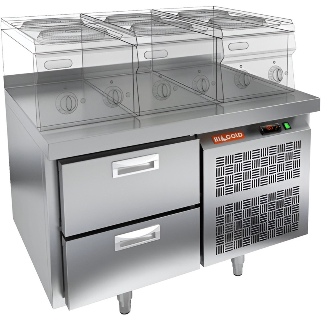 Стол охлаждаемый HiCold GN 2/TN LT О под тепловое оборудование предназначен для обработки ингредиентов перед приготовлением блюд, а также для кратковременного хранения скоропортящихся продуктов и напитков на предприятиях общественного питания и торговли.
