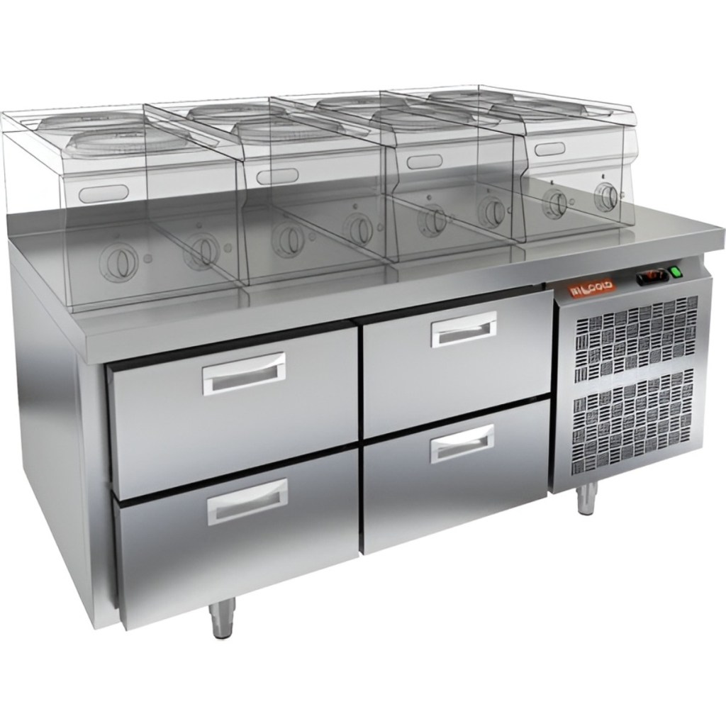 Каталог оборудования Холодильное оборудованиеСтолы охлаждаемыеСтолы холодильные под тепловое оборудованиеСтол охлаждаемый HiCold SN 22/TN LT под тепловое оборудование, без столещницы Стол охлаждаемый HiCold SN 22/TN LT под тепловое оборудование, без столещницы Код товара: 065-540 Поделиться: WhatsAppTelegram СравнитьДобавить в КПВ избранное 0 169 911 ₽ В корзину 0 шт Под заказСамовывоз сегодня бесплатно Взять в кредит Купить в лизинг Получить консультацию в WhatsApp Описание Характеристики Отзывы 0 Инструкции 2 Стол охлаждаемый HiCold SN 22/TN LT под тепловое оборудование, без столещницы предназначен для обработки ингредиентов и временного хранения скоропортящихся продуктов и напитков на предприятиях общественного питания и торговли. Устройство совмещает функции рабочей поверхности и холодильной камеры. Столешница рассчитана на установку теплового оборудования: под рабочей поверхностью встроен ДСП-лист, который укрепляет конструкцию и препятствует проникновению тепла внутрь. Такое решение обеспечивает дополнительную жесткость, позволяет рационально использовать рабочее пространство и повышает эффективность работы на кухне. Внимание! На изображении показана аналогичная модель в комплектации со столешницей. Особенности: 4 выдвижных ящика — обеспечивают удобный доступ к продуктам и инвентарю Автоматические доводчики дверей с фиксатором открытого положения повышают эргономику и способствуют сохранению холода. Легкозаменяемые магнитные уплотнители обеспечивают плотное прилегание дверей и лёгкость в обслуживании. Открытая агрегатная часть упрощает доступ к компрессору при техническом обслуживании. Регулируемые по высоте ножки позволяют установить стол на неровной поверхности. Рабочая поверхность без столешницы — возможность установки собственной рабочей поверхности или оборудования по потребностям кухни. Толщина теплоизоляции — 50 мм способствует энергоэффективности и стабильному температурному режиму. HiCold SN 22/TN LT без столещницы— это надёжное и удобное оборудование, сочетающее охлаждение и рабочее пространство. Благодаря продуманной конструкции и совместимости с гастроемкостями GN 1/1, стол станет практичным решением для кухни любого профессионального уровня.Изображение товара, представленного на фото, может отличаться от его фактического вида. Показать все Габаритные размеры1390×600×675 ммДиапазон рабочей температурыот -2 до +10 °CМатериал столешницыБез столещницы Расположение агрегатаБоковое Объём220 лТип столаС ящиками Количество ящиков4 штРазмер полки530×325 ммНапряжение220 ВМощность0,22 кВтТип охлажденияДинамический Тип оттайкиАвтоматическая Габариты в упаковке1550×750×850 ммВес нетто70 кгВес брутто100 кгБрендHicold Оставить отзыв Еще никто не оставил отзыв на этот товар Паспорт на HICOLD SN 22TN LT.pdfДекларация о соответствии.pdf Похожие товары Перейти в каталог В наличии 77 661 ₽ Стол холодильный среднетемпературный HiCold GN 11/TN W Под заказ 125 670 ₽ Стол холодильный среднетемпературный Abat СХС-70-01 с бортом (дверь, дверь) С этим товаром покупают В наличии 201 690 ₽ Шкаф морозильный Полюс Carboma F1400 В наличии 195 030 ₽ Плита индукционная Аbat КИП-47Н Ранее просмотрено Цена по запросу Шкаф шоковой заморозки HiCold W7TGN