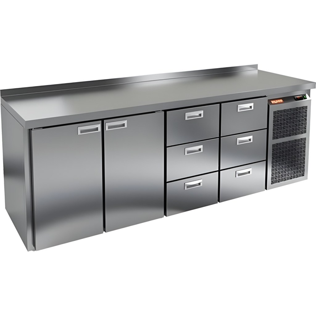 Каталог оборудования Холодильное оборудованиеСтолы охлаждаемыеСтолы холодильные среднетемпературныеСтол холодильный среднетемпературный HiCold BN 1133 BR2 TN Стол холодильный среднетемпературный HiCold BN 1133 BR2 TN Код товара: 062-319 Поделиться: WhatsAppTelegram СравнитьДобавить в КПВ избранное 0 275 031 ₽ В корзину 0 шт В наличииСамовывоз сегодня бесплатно Взять в кредит Купить в лизинг Получить консультацию в WhatsApp Описание Характеристики Отзывы 0 Стол холодильный среднетемпературный HiCold BN 1133 BR2 TN — это многофункциональное профессиональное оборудование, предназначенное для предприятий общественного питания и торговли. Он обеспечивает удобную поверхность для раскатки теста и подготовки продуктов, а также выполняет функцию охлаждаемого шкафа для кратковременного хранения скоропортящихся ингредиентов и напитков. Устройство оснащено удобной электронной панелью управления и выполнено из нержавеющей стали, что гарантирует долговечность и простоту в уходе. Комплектация: 2 полки размером 330×325 мм. Особенности модели: Надёжный компрессор от мирового производителя — стабильная и эффективная работа. Принудительная вентиляция — обеспечивает равномерное распределение холода во всём объёме камеры. Цельнозаливной корпус с теплоизоляцией 50 мм — сводит к минимуму потери холода, придаёт конструкции прочность. Автоматические дверные доводчики с фиксатором — для комфортного и безопасного использования. Магнитные уплотнители, которые легко заменить при необходимости — сохраняют герметичность. Регулируемые по высоте ножки — удобная установка на любой поверхности. Упрощённый доступ к агрегату — быстрое техническое обслуживание без лишних усилий. Толщина столешницы — 50 мм, высота борта — 50 мм — прочная и безопасная рабочая зона. Поддерживает работу при температуре окружающей среды от +12 до +37 °C. HiCold BN 1133 BR2 TN — это надёжный и функциональный холодильный стол, сочетающий в себе рабочую поверхность и охлаждаемое хранение. Он обеспечивает высокую производительность, удобство в эксплуатации и соответствует требованиям современной профессиональной кухни. Отличный выбор для кафе, ресторанов и пищевых производств.Изображение товара, представленного на фото, может отличаться от его фактического вида. Показать все Габаритные размеры2280×500×850 ммДиапазон рабочей температурыот -2 до +10 °CРасположение агрегатаБоковое Материал столешницыНержавеющая Тип столаС дверьми и ящиками Тип двериГлухая Объём530 лКоличество дверей2 штКоличество полок2 штКоличество ящиков6 штРазмер полки330×325 ммНапряжение220 ВМощность0,48 кВтТип охлажденияДинамический Тип оттайкиАвтоматическая СтолешницаС бортом Вес нетто145 кгВес брутто165 кгБрендHicoldВсе холодильные столы HicoldВсе нержавеющие холодильные столы Все холодильные столы с бортом Оставить отзыв Еще никто не оставил отзыв на этот товар Похожие товары Перейти в каталог Под заказ 79 911 ₽ Стол холодильный среднетемпературный HiCold GN 1/TN W Под заказ 104 947 ₽ Стол холодильный среднетемпературный Abat СХС-70 с бортом (дверь) С этим товаром покупают В наличии 96 390 ₽ Шкаф холодильный Полюс Carboma R560 В наличии 58 095 ₽ Витрина холодильная для ингредиентов HICOLD VRTU 1835 1/3 Ранее просмотрено Под заказ 181 432 ₽ Стол морозильный HiCold GN 1111/BT W P (без агрегата)