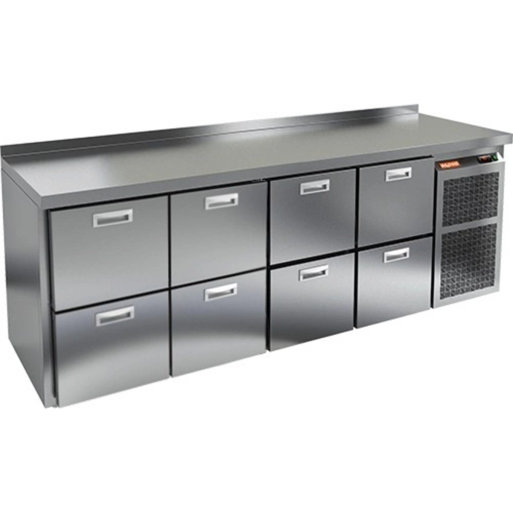 Каталог оборудования Холодильное оборудованиеСтолы охлаждаемыеСтолы холодильные среднетемпературныеСтол холодильный среднетемпературный HiCold GN 2222 BR2 TN Стол холодильный среднетемпературный HiCold GN 2222 BR2 TN Код товара: 065-429 Поделиться: WhatsAppTelegram СравнитьДобавить в КПВ избранное 0 306 531 ₽ В корзину 0 шт Под заказСамовывоз сегодня бесплатно Взять в кредит Купить в лизинг Получить консультацию в Max Описание Характеристики Отзывы 0 Стол холодильный среднетемпературный HiCold GN 2222 BR2 TN — это профессиональное оборудование, предназначенное для кратковременного хранения скоропортящихся продуктов и напитков, а также удобной подготовки ингредиентов на предприятиях общественного питания и торговли. Модель сочетает функциональность, надежность и эргономичный дизайн. Ключевые особенности: 8 выдвижных ящиков обеспечивают удобный доступ к продуктам и рациональную организацию пространства. Электронная панель управления позволяет просто и точно регулировать температуру. Автоматические доводчики обеспечивают мягкое и плотное закрывание ящиков. Легкозаменяемые магнитные уплотнители гарантируют надежную герметичность. Регулируемые по высоте ножки позволяют адаптировать стол к любому рабочему пространству. Корпус и столешница из нержавеющей стали обеспечивают долговечность, устойчивость к коррозии и простоту в уходе. Толщина теплоизоляции, столешницы и борта — 50 мм, что гарантирует оптимальное сохранение температуры и жесткость конструкции. Рабочий температурный режим сохраняется при температуре окружающей среды от +12 до +37 °C. HiCold GN 2222 BR2 TN — это многофункциональный холодильный стол, идеально подходящий для профессиональной кухни. Конструкция позволяет удобно распределять ингредиенты, а эргономичные выдвижные модули обеспечивают быстрый доступ к продуктам. Высокое качество материалов, надежные комплектующие и простота эксплуатации делают этот стол незаменимым помощником в условиях интенсивной ежедневной работы.Изображение товара, представленного на фото, может отличаться от его фактического вида. Показать все Габаритные размеры2395×700×850 ммДиапазон рабочей температурыот -2 до +10 °CРасположение агрегатаБоковое Материал столешницыНержавеющая Тип столаС ящиками Объём775 лКоличество ящиков8 штНапряжение220 ВМощность0,48 кВтТип охлажденияДинамический Тип оттайкиАвтоматическая СтолешницаС бортом Габариты в упаковке2420×850×1000 ммВес нетто150 кгВес брутто190 кгБрендHicoldВсе холодильные столы HicoldВсе нержавеющие холодильные столы Все холодильные столы с бортом Оставить отзыв Еще никто не оставил отзыв на этот товар Похожие товары Перейти в каталог Под заказ 148 851 ₽ Стол холодильный среднетемпературный HiCold SN 1111/TN W В наличии 119 067 ₽ Стол холодильный среднетемпературный Polair TM4GN-GС С этим товаром покупают В наличии 181 658 ₽ Шкаф холодильный универсальный Polair CV 114-G В наличии 10 996 ₽ Индукционная плита HURAKAN HKN-ICW35ML WOK