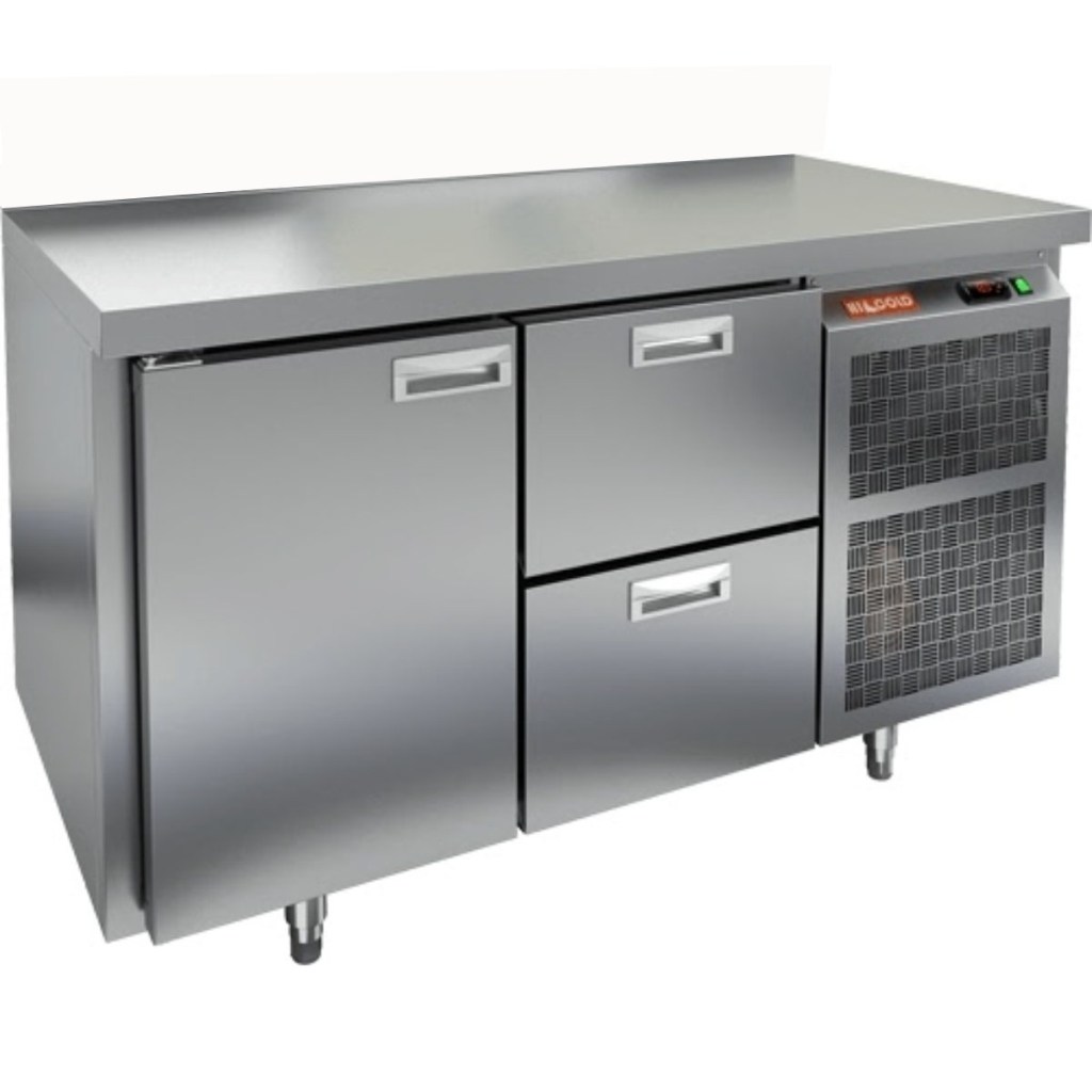 Стол оснащен одной глухой дверью и двумя выдвижными ящиками, что обеспечивает удобный доступ к продуктам и рациональное использование внутреннего пространства. Оборудование идеально подходит для предприятий общественного питания.