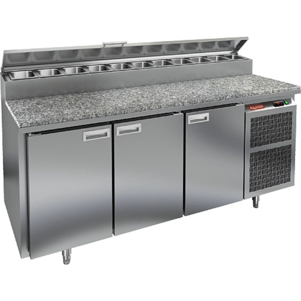 Стол холодильный для пиццы HiCold PZ2-111/GN (1/6H) камень (R290) предназначен для предприятий общественного питания и торговли. Он используется для раскатки теста и подготовки ингредиентов, необходимых для приготовления пиццы, салатов и других блюд, а также для охлаждения и кратковременного хранения скоропортящихся продуктов и напитков. Модель сочетает рабочую поверхность с охлаждаемым объемом, что значительно облегчает работу повара, позволяя иметь все необходимые компоненты всегда под рукой.