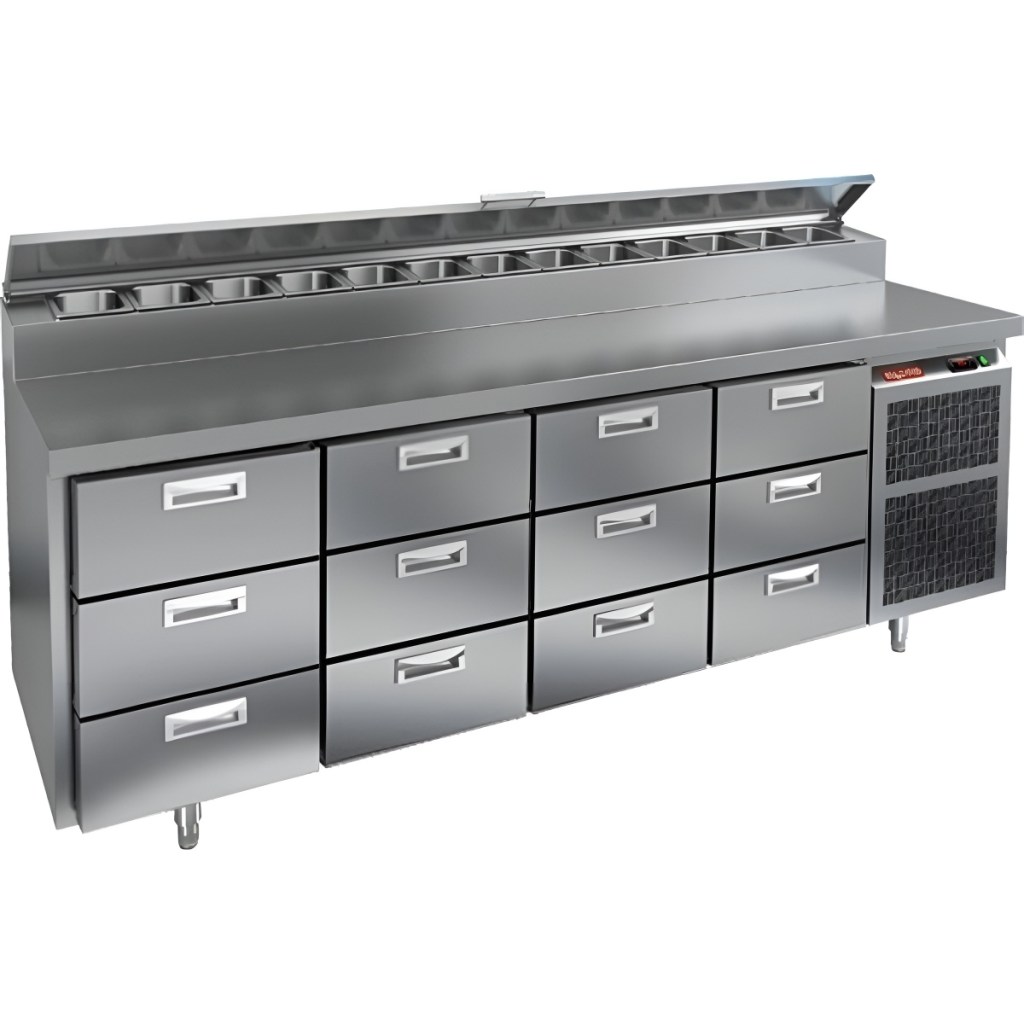 Каталог оборудования Холодильное оборудованиеСтолы охлаждаемыеСтолы холодильные для пиццыСтол холодильный для пиццы HiCold PZ2-3333GN (1/6) Стол холодильный для пиццы HiCold PZ2-3333GN (1/6) Код товара: 064-764 Поделиться: WhatsAppTelegram СравнитьДобавить в КПВ избранное 0 434 242 ₽ В корзину 0 шт Под заказСамовывоз сегодня бесплатно Взять в кредит Купить в лизинг Получить консультацию в Max Описание Характеристики Отзывы 0 Инструкции 1 Стол холодильный для пиццы HiCold PZ2-3333GN (1/6) камень предназначен для кухонь и предприятий общественного питания. Он используется для раскатки теста, подготовки ингредиентов для пиццы, салатов и других блюд, а также для охлаждения и кратковременного хранения скоропортящихся продуктов. Модель совмещает гранитную рабочую поверхность и охлаждаемый отсек с 12 выдвижными ящиками, обеспечивая удобный доступ к ингредиентам и эффективное хранение без дверей. Особенности: Динамическая система охлаждения для равномерного поддержания температуры Автоматическая оттайка для удобного обслуживания Электронная панель управления для точной настройки параметров Вместительная внутренняя полка формата GN 1/1 (размер 530×325 мм) 12 выдвижных ящиков для хранения ингредиентов Легкозаменяемые магнитные уплотнители для герметичности Открытая агрегатная часть для легкого доступа к компонентам Регулируемые по высоте ножки для устойчивости Гранитная столешница глубиной 486 мм и толщиной 50 мм — устойчива к повреждениям, легко моется и гигиенична Толщина теплоизоляции: 50 мм Максимальная глубина гастроемкостей: 100 мм Вместимость салат-бара: 13 гастроемкости Стол холодильный HiCold PZ2-3333GN (1/6) камень — это надежное и удобное решение для профессиональной кухни. Он обеспечивает легкий доступ к ингредиентам, упрощает хранение и подготовку продуктов и полностью соответствует стандартам предприятий общественного питания.Изображение товара, представленного на фото, может отличаться от его фактического вида. Показать все Габаритные размеры2280×700×1000 ммДиапазон рабочей температурыот +2 до +10 °CРасположение агрегатаБоковое Материал столешницыНержавеющая Тип столаС ящиками Объём660 лТип гастроемкостейGN 1/6 Количество ящиков12 штРазмер полки530×325 ммНапряжение220 ВМощность0,5 кВтТип охлажденияДинамическое Тип оттайкиАвтоматическая Габариты в упаковке2420×850×1080 ммВес нетто208 кгВес брутто240 кгБрендHicoldВсе холодильные столы для пиццы HicoldВсе нержавеющие холодильные столы для пиццы Оставить отзыв Еще никто не оставил отзыв на этот товар Декларация о соответствии.pdf Ранее просмотрено Под заказ 229 941 ₽ Стол холодильный для пиццы HiCold PZ1-13/GN (1/3) Под заказ 247 761 ₽ Стол холодильный для пиццы HiCold PZE2-221/GN (1/6H) Под заказ 244 971 ₽ Стол холодильный для пиццы HiCold PZ1-112GN (1/3H) Под заказ 342 622 ₽ Стол холодильный для пиццы HiCold PZE1-2222GN (1/3)