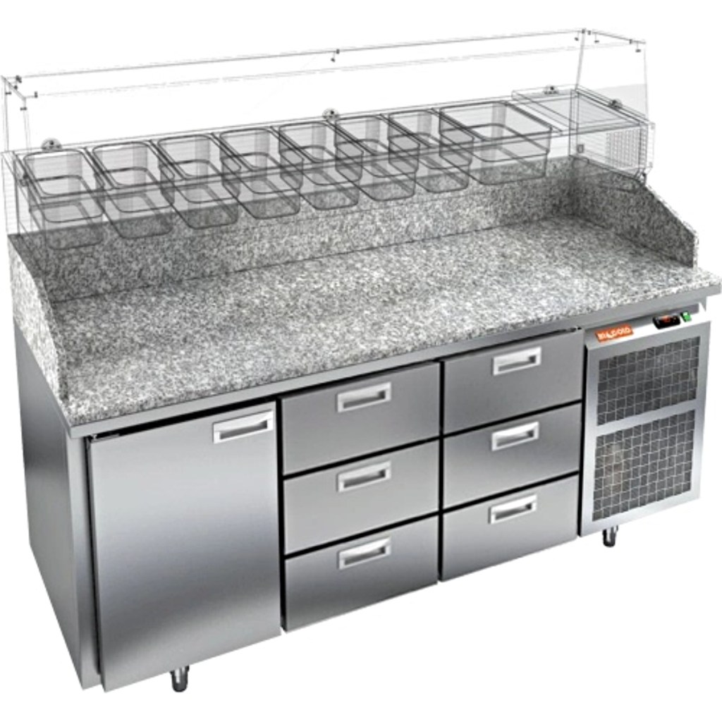 Каталог оборудования Холодильное оборудованиеСтолы охлаждаемыеСтолы холодильные для пиццыСтол холодильный для пиццы HiCold PZ3-133/GN камень Стол холодильный для пиццы HiCold PZ3-133/GN камень Код товара: 065-009 Поделиться: WhatsAppTelegram СравнитьДобавить в КПВ избранное 0 358 552 ₽ В корзину 0 шт Под заказСамовывоз сегодня бесплатно Взять в кредит Купить в лизинг Получить консультацию в WhatsApp Описание Характеристики Отзывы 0 Стол холодильный для пиццы HiCold PZE3-133/GN камень предназначен для использования в пиццериях, кафе, магазинах и ресторанах. Он идеально подходит для раскатки теста, подготовки ингредиентов и кратковременного хранения скоропортящихся продуктов. Витрина приобретается отдельно. Стол сочетает корпус из нержавеющей стали и гранитную столешницу, которая устойчива к механическим и температурным нагрузкам и удобна в работе с тестом. Такая конструкция обеспечивает долговечность, гигиеничность и простоту ухода. Особенности модели: Охлаждение: динамическое — равномерное поддержание температуры Оттайка: автоматическая — удобство и экономия времени Панель управления: электронная — точная настройка температуры Ножки: регулируемые по высоте — устойчивость на неровной поверхности Двери: 1 глухая дверца с автоматическими доводчиками и фиксатором открытого положения Ящики: 6 выдвижных ящика — удобное хранение ингредиентов Уплотнители: легкозаменяемые магнитные — герметичность и простота обслуживания Толщина теплоизоляции: 50 мм — сохранение холода и энергоэффективность Рабочая поверхность: глубина 680 мм — удобство работы HiCold PZE3-133/GN камень— это надёжный и функциональный холодильный стол для пиццы, который сочетает прочность, эргономику и эффективное охлаждение. Благодаря гранитной столешнице, корпусу из нержавеющей стали, двум глухим дверям и двум выдвижным ящикам он станет универсальным решением для профессиональной кухни. Изображение товара, представленного на фото, может отличаться от его фактического вида. Показать все Габаритные размеры1835×700×1050 ммДиапазон рабочей температурыот +2 до +10 °CРасположение агрегатаБоковое Материал столешницыГранитная Тип столаС дверьми и ящиками Тип двериГлухая Объём505 лКоличество дверей2 штКоличество ящиков2 штРазмер полки530×325 ммНапряжение220 ВМощность0,5 кВтТип охлажденияДинамическое Тип оттайкиАвтоматическая Габариты в упаковке2000×850×1180 ммВес нетто172 кгВес брутто192 кгБрендHicoldВсе холодильные столы для пиццы HicoldВсе нержавеющие холодильные столы для пиццы Оставить отзыв Еще никто не оставил отзыв на этот товар Ранее просмотрено Под заказ 393 922 ₽ Стол холодильный для пиццы HiCold PZE3-2222/GN камень Под заказ 207 801 ₽ Стол холодильный для пиццы HiCold PZE1-111GN (1/3) камень Под заказ 406 521 ₽ Стол холодильный для пиццы HiCold PZ3-2222/GN камень Под заказ 373 852 ₽ Стол холодильный для пиццы HiCold PZ3-223/GN камень Под заказ 330 021 ₽ Стол холодильный для пиццы HiCold PZ3-1113/GN камень