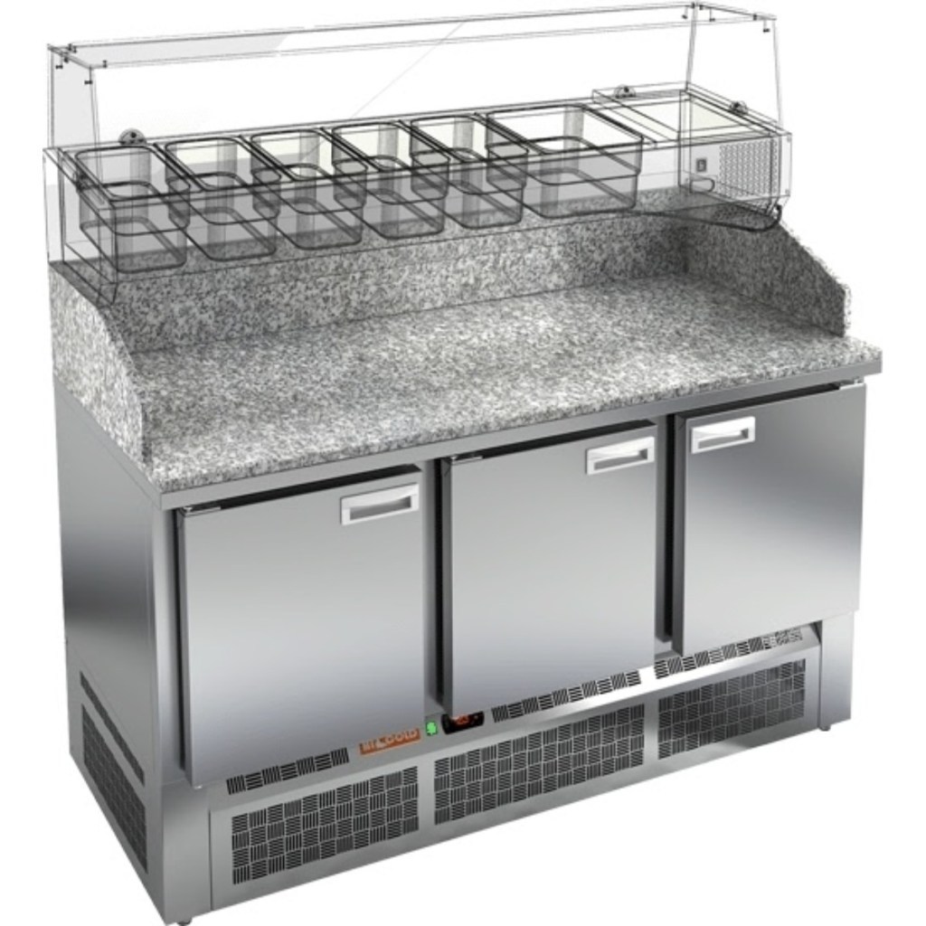 Стол холодильный для пиццы HiCold PZE3-111/GN камень предназначен для использования на предприятиях общественного питания и торговли. Он обеспечивает удобство при раскатке теста и обработке ингредиентов для пиццы, салатов и других блюд, а также позволяет охлаждать и кратковременно хранить скоропортящиеся продукты и напитки. Благодаря совмещению рабочей поверхности и охлаждаемого объёма все необходимые компоненты всегда под рукой, что упрощает работу повара. Корпус выполнен из нержавеющей стали, столешница — из прочного гранита, что гарантирует долговечность и надежность конструкции.