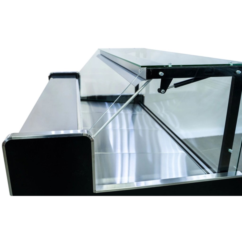 Каталог оборудования Холодильное оборудованиеВитрины холодильныеВитрины холодильные среднетемпературные от 0 до +5 °СВитрина холодильная Ангара 3 КУБ 1,8 статика Витрина холодильная Ангара 3 КУБ 1,8 статика Код товара: 066-485 Поделиться: WhatsAppTelegram СравнитьДобавить в КПВ избранное 0 90 500 ₽ В корзину 0 шт В наличииСамовывоз сегодня бесплатно Взять в кредит Купить в лизинг Получить консультацию в WhatsApp Описание Характеристики Отзывы 0 Витрина холодильная Ангара 3 КУБ 1,8 статика предназначена для демонстрации и кратковременного хранения пищевых продуктов. Витрина поддерживает заданную температуру предварительно охлаждённых продуктов и гармонично вписывается в оформление торгового зала или открытой площадки. Особенности: Статическое охлаждение: естественная циркуляция воздуха без вентиляторов, поддержание температуры и свежести продуктов Встроенный компрессорный холодильный агрегат Embraco Aspera или Secop (Danfoss) Надёжный микродвигатель EBM-PAPST Ударопрочное прямое лобовое стекло и боковые стекла толщиной 6 мм Материалы: поверхность выкладки – нержавеющая сталь, подтоварники – оцинкованная сталь с полимерным покрытием, столешницы – нержавеющая сталь Вместительный подтоварник для хранения продукции Автоматическое оттаивание испарителя с отводом талой воды в ёмкость в агрегатном отсеке Электронное управление температурой через блок Elitech ETC-974 (2 датчика, усиленное реле) Равномерное распределение температуры по объёму камеры без образования льда и инея Светодиодное LED-освещение – яркое, экономичное, с низким тепловыделением; включается кнопкой на панели управления Автомат IEK для надёжного включения/выключения витрины Ровное расположение витрины благодаря регулируемым опорам, правильный сбор конденсата и бесшумная работа Хладагент – экологичный и нетоксичный R-134a, R-404a Испаритель SEST LUVE от итальянского производителя Комплектация: с подтоварником и электронным блоком управления Температура окружающей среды: +12…+35 °C Ангара 3 КУБ 1,8 – надёжная и компактная витрина для демонстрации и хранения предварительно охлаждённых продуктов. Обеспечивает равномерное охлаждение, яркое LED-освещение и автоматическое оттаивание, что делает её отличным решением для магазинов, гастрономий и открытых торговых площадок.Изображение товара, представленного на фото, может отличаться от его фактического вида. Показать все Габаритные размеры1820×1150×1300 ммДиапазон рабочей температурыот 0 до +5 °CПлощадь выкладки1,44 м²Длина1820 ммГлубина1150 ммВысота1300 ммНоминальная мощность304 ВтРазмер выкладки820 ммПолезный объем330 лХолодообеспечениеВстроенное Тип охлажденияСтатическое Тип оттайкиАвтоматическая Температура эксплуатацииот +12 до +35 °CПодсветкаЕсть ХладагентR134a, R404a Напряжение220 ВРасход электроэнергии в сутки7,3 кВт/сутГабариты в упаковке2000×1500×1200 ммОбъём (брутто)3,60 м³Вес нетто230 кгВес брутто330 кгБрендАнгараВсе витрины холодильные среднетемпературные от 0 до +5 °С 1,8 м Оставить отзыв Еще никто не оставил отзыв на этот товар Ранее просмотрено В наличии 95 400 ₽ Витрина холодильная Ангара 3 КУБ 2,0 статика В наличии 81 400 ₽ Витрина холодильная Ангара 2 КУБ 1,3 статика, открытая В наличии 78 000 ₽ Витрина холодильная Ангара 2 КУБ 1,0 статика, открытая В наличии 81 900 ₽ Витрина холодильная Ангара 1 КУБ 1,3 динамика В наличии 83 100 ₽ Витрина холодильная Ангара 2 КУБ 1,3 динамика