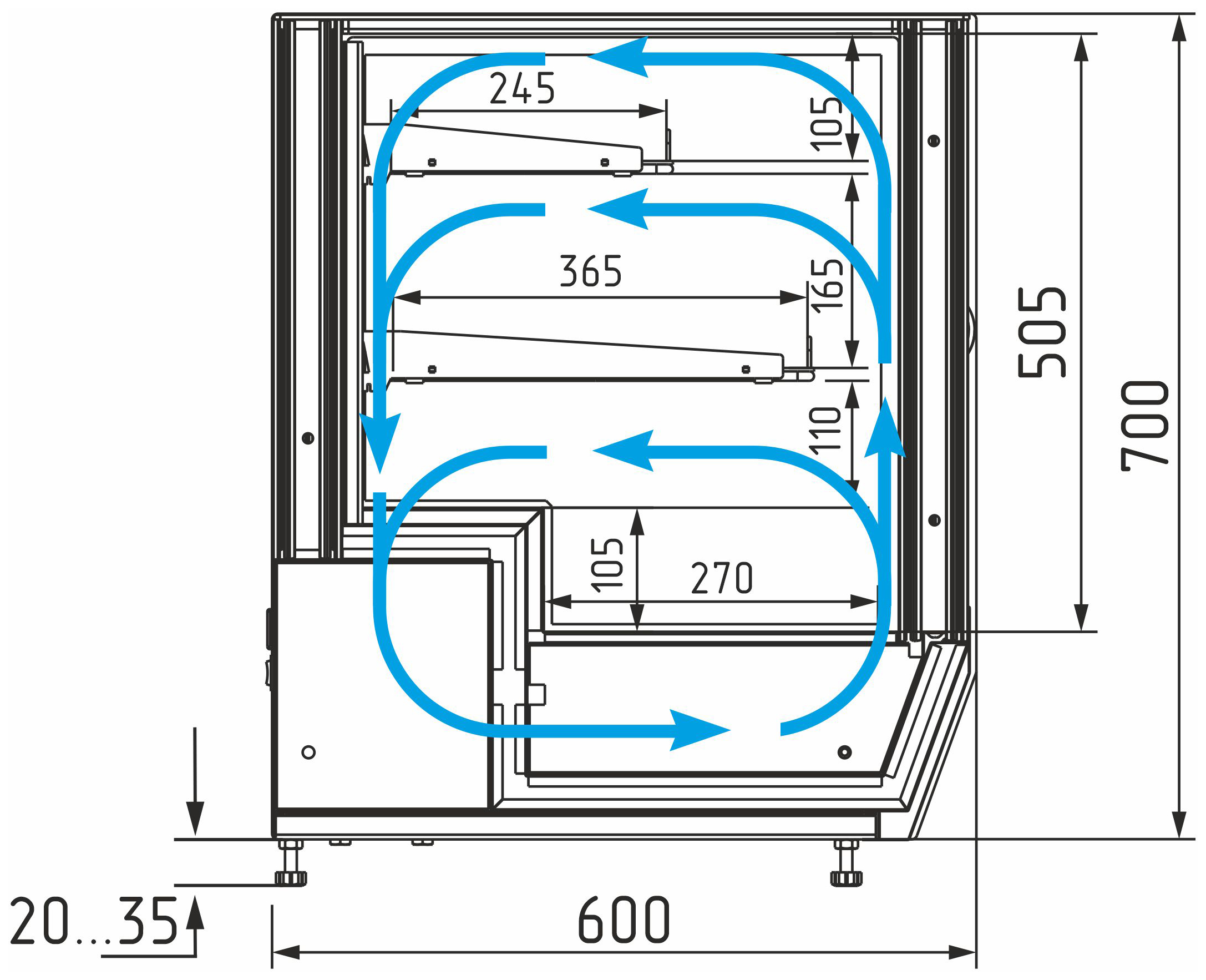 Каталог оборудования Холодильное оборудованиеВитрины настольныеВитрина холодильная настольная Carboma AC59 VM 0,9-1 (слайдер) (0430) Витрина холодильная настольная Carboma AC59 VM 0,9-1 (слайдер) (0430) Код товара: 063-687 Поделиться: WhatsAppTelegram СравнитьДобавить в КПВ избранное 0 117 630 ₽ В корзину 0 шт Под заказСамовывоз сегодня бесплатно Взять в кредит Купить в лизинг Получить консультацию в WhatsApp Описание Характеристики Отзывы 0 Инструкции 2 Витрина холодильная настольная Carboma AC59 VM 0,9-1 (слайдер) (0430) — это универсальная охлаждаемая витрина для демонстрации и кратковременного хранения кондитерских изделий, десертов, салатов и напитков. Идеально подходит для небольших кафе, баров и заведений общественного питания. Модель оснащена закалёнными боковыми стеклопакетами, раздвижными фронтальными и задними дверцами, а также двумя охлаждаемыми полками-решётками с ограничителями. Может устанавливаться на столешницу или встраиваться в барную стойку. Корпус выполнен из стали с ППУ-теплоизоляцией, а рабочая поверхность — из нержавеющей стали. Ключевые особенности: Динамическая система охлаждения — равномерное распределение температуры Компрессор европейского производства — высокая надёжность Электронный блок управления Carel — точный контроль температурного режима Выпариватель конденсата — исключает необходимость ручного слива Возможность установки полок под углом 5° — улучшенная презентация Фронтальные и задние раздвижные дверцы — удобный доступ с обеих сторон Боковая LED-подсветка — подчёркивает структуру десертов и изделий Современный кубический дизайн — стильный внешний вид Регулируемые ножки-опоры — устойчивость на любых поверхностях Настольное или встраиваемое размещение — гибкость установки Стабильный температурный режим — для безопасного хранения продуктов Глубина нижней зоны выкладки: 270 мм Глубина полок: 365 мм (верхняя) / 245 мм (нижняя) Длина нижнего поддона: 866 мм Максимальная высота выкладки продуктов: нижний поддон — 150 мм, полки — 100 мм Температура окружающей среды: от 12 до 25 °C Относительная влажность воздуха: до 60% Carboma AC59 VM 0,9-1 (слайдер) (0430) — это надёжная и эргономичная охлаждаемая витрина с удобным доступом с обеих сторон, которая обеспечит качественную демонстрацию и сохранность продукции в кафе, барах и точках продаж.Изображение товара, представленного на фото, может отличаться от его фактического вида. Показать все Габаритные размеры900×600×735 ммДиапазон рабочей температурыот +4 до +10 °CДлина900 ммГлубина600 ммВысота735 ммРазмещениеГоризонтальная Площадь выкладки0,73 м²Полезный объем витрины0,09 м³Тип охлажденияДинамическое Климатический класс3 ХладагентR290, R600a Напряжение220 ВЭнергопотребление в сутки0,5 кВтКоличество полок2 штГабариты в упаковке1050×750×890 ммВес нетто89 кгВес брутто126 кгБрендПолюсВсе витрины настольные CarbomaВсе холодильные настольные витриныВсе стеклянные настольные витрины Оставить отзыв Еще никто не оставил отзыв на этот товар Брошюра на Carboma AMRA AC59 VM.pdfСхема Carboma AMRA AC59 VM 0,9-1 Slider.jpg Похожие товары Перейти в каталог Под заказ 210 000 ₽ Витрина кондитерская Carboma KC70 VM 1,3-2 Standart (9006-9005) открытая Под заказ 155 600 ₽ Витрина кондитерская Carboma K70 N-3 Light Паттерн (0110 Мариэль) угловая В наличии 146 300 ₽ Витрина кондитерская Carboma KC70 VV 0,6-1 Standard (версия 2.0) (9005) Под заказ 178 000 ₽ Витрина кондитерская Carboma KC70 VM 0,6-2 Standard открытая цвет по схеме стандарт 